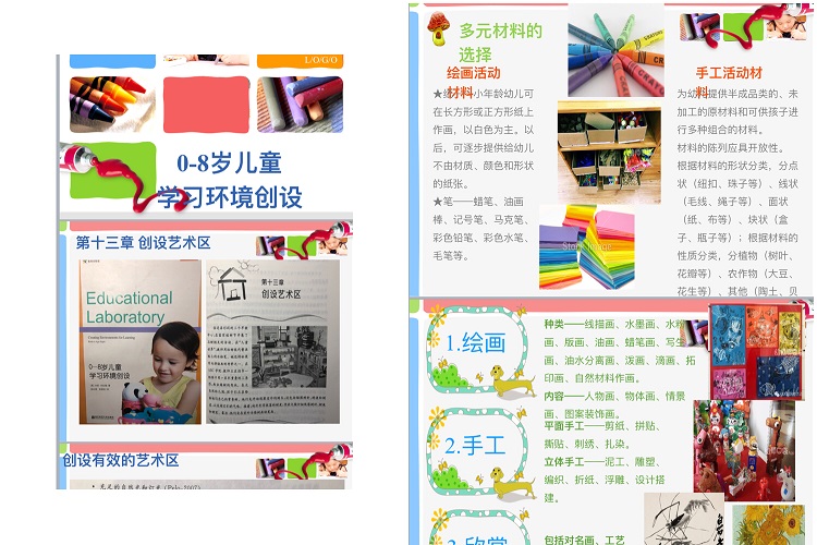 为了提高教师对环境创设理念的认识,让幼儿真正在与环境的互动中成长,让环境与幼儿对话、与家长对话,发挥环境“第三位教师”的作用。同时,提供机会和平台,让教师通过互相参观学习,加强交流,寻找差距,从而提高自己对环境创设的能力。我园开展了读书分享“创设艺术区”